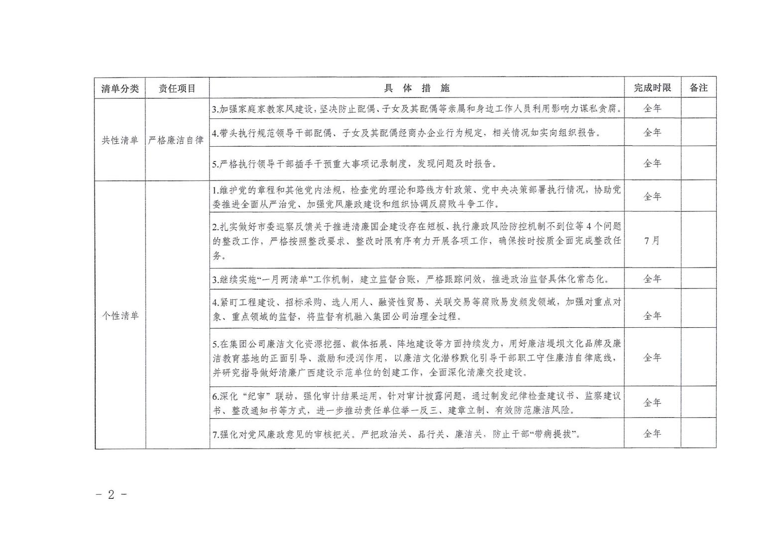 領(lǐng)導(dǎo)班子其他成員2024年度黨風(fēng)廉政建設(shè)“一崗雙責(zé)”清單(二)